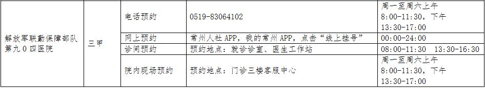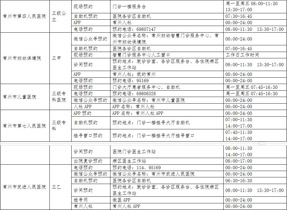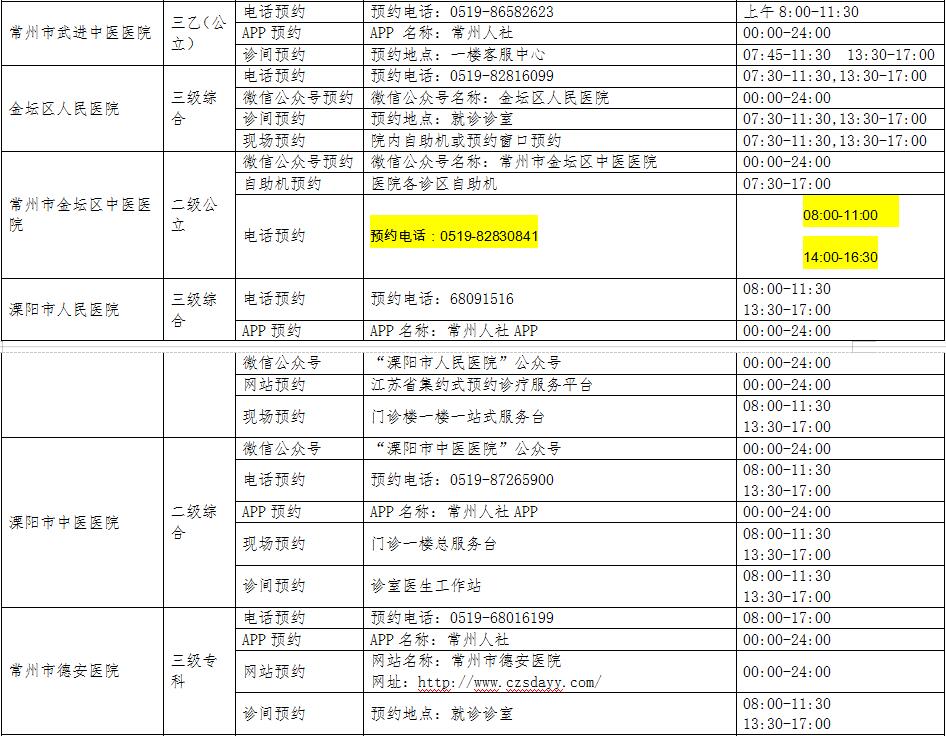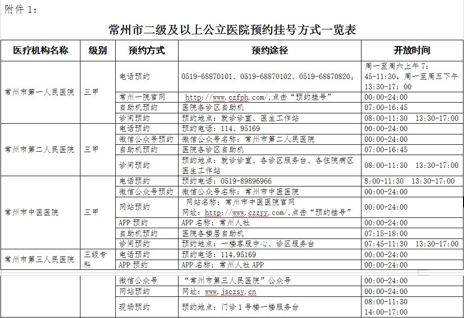 1.常州市二级及以上公立医院预约挂号方式一览表